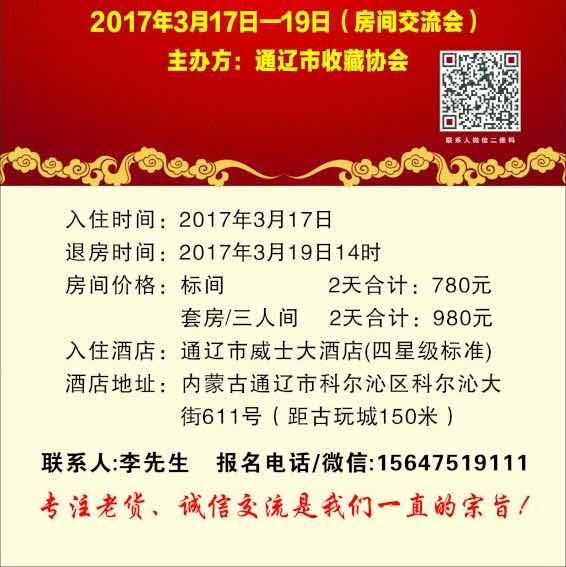 内蒙古通辽古玩交流会定于2017年3.17到3.19在通辽市威士大酒店举行,联系人李先生15647519111